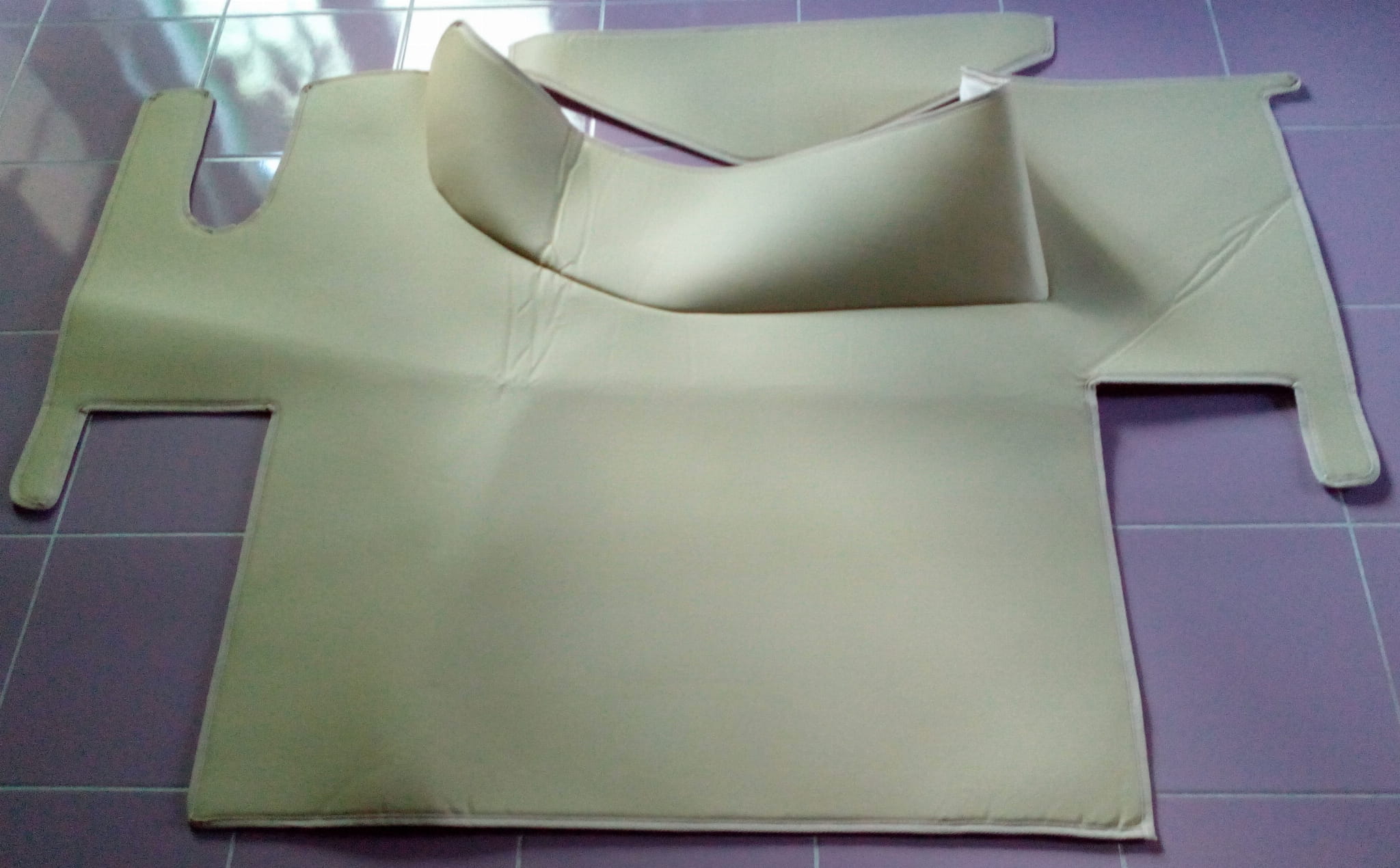Dywaniki dedykowane do samochodu ciężarowego Renault gama T z płaską podłogą (bez wysokiego tunelu). Dywaniki wykonane są z gładkiej beżowej ekoskóry z obszyciem w takim samym kolorze.