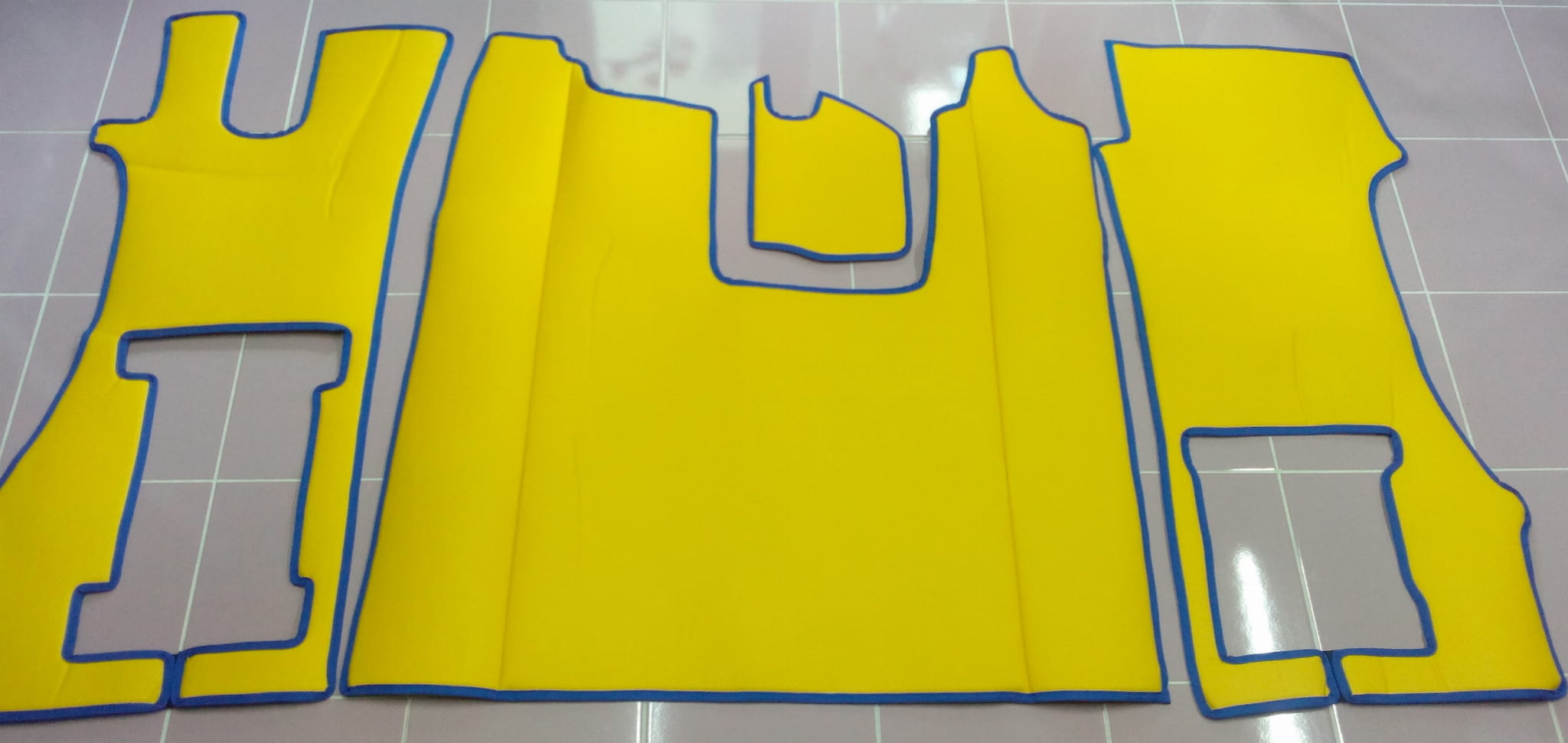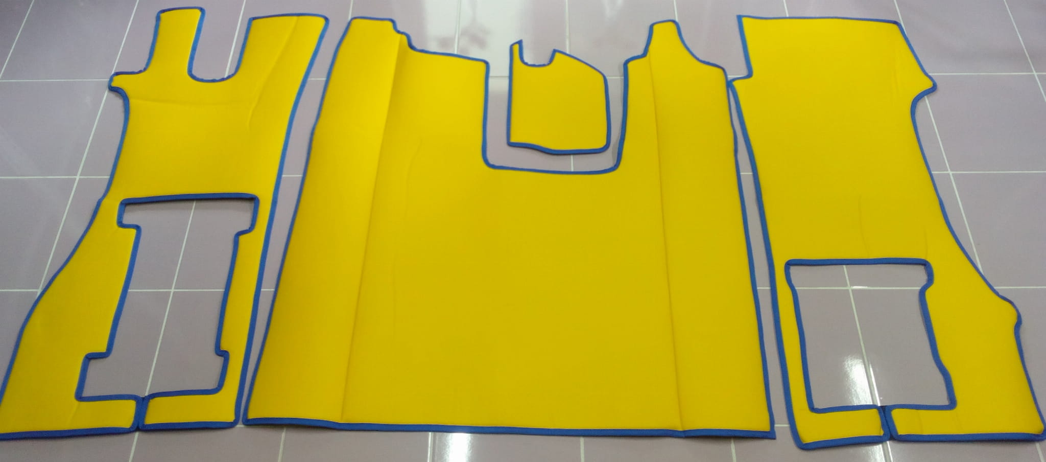 Dywaniki składają się z 4 części: tunel, 2 części pod nogi, 1 mata na półeczkę.