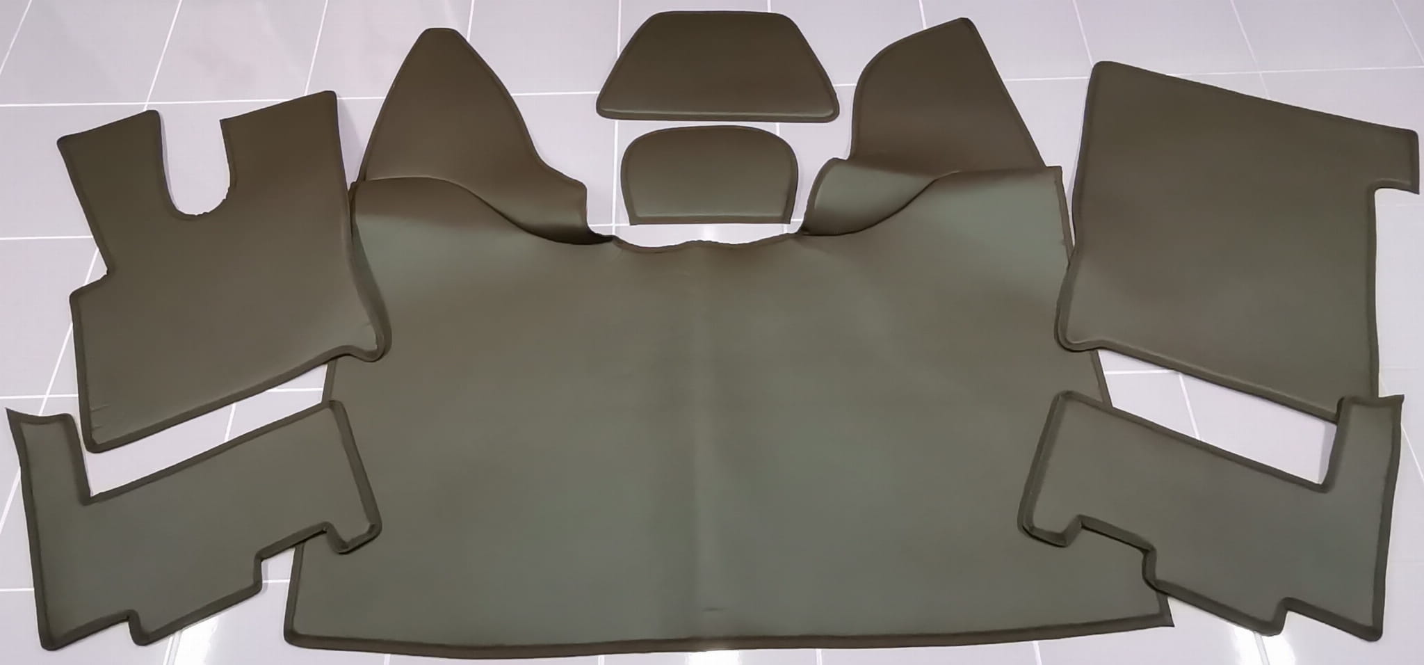 Dywaniki dedykowane są do samochodu cieżarowego marki Daf XF 106 produkowanego od roku 2018 do roku 2022 (wersja po lifcie). Wykonane są z gładkiej ekoskóry w kolorze ciemno brązowym (gorzka czekolada). Obszycie w kolorze brązowym. Komplet skłąda się z 7 części: tunel, 2 części pod nogi, 2 części za fotele oraz 2 maty na półeczki.