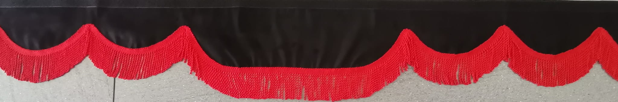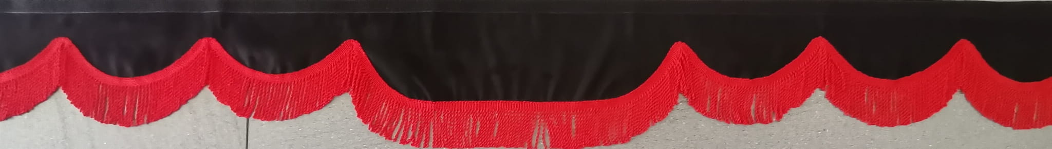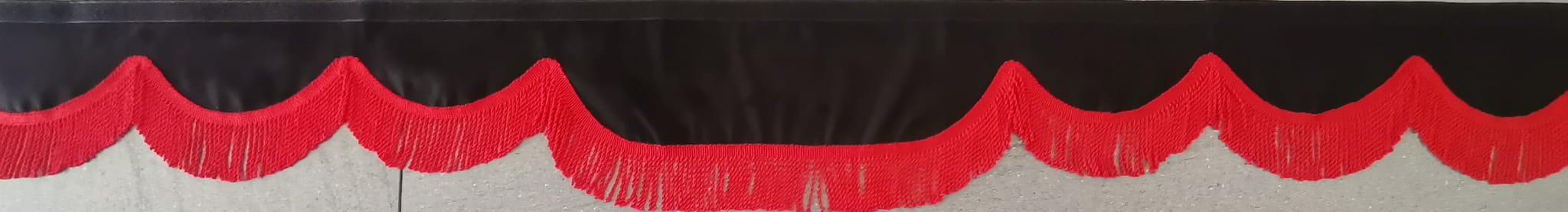 Falbanka wykonana jest z czarnego pluszu, wykończona jest frędzlami prostymi w kolorze czerwonym.