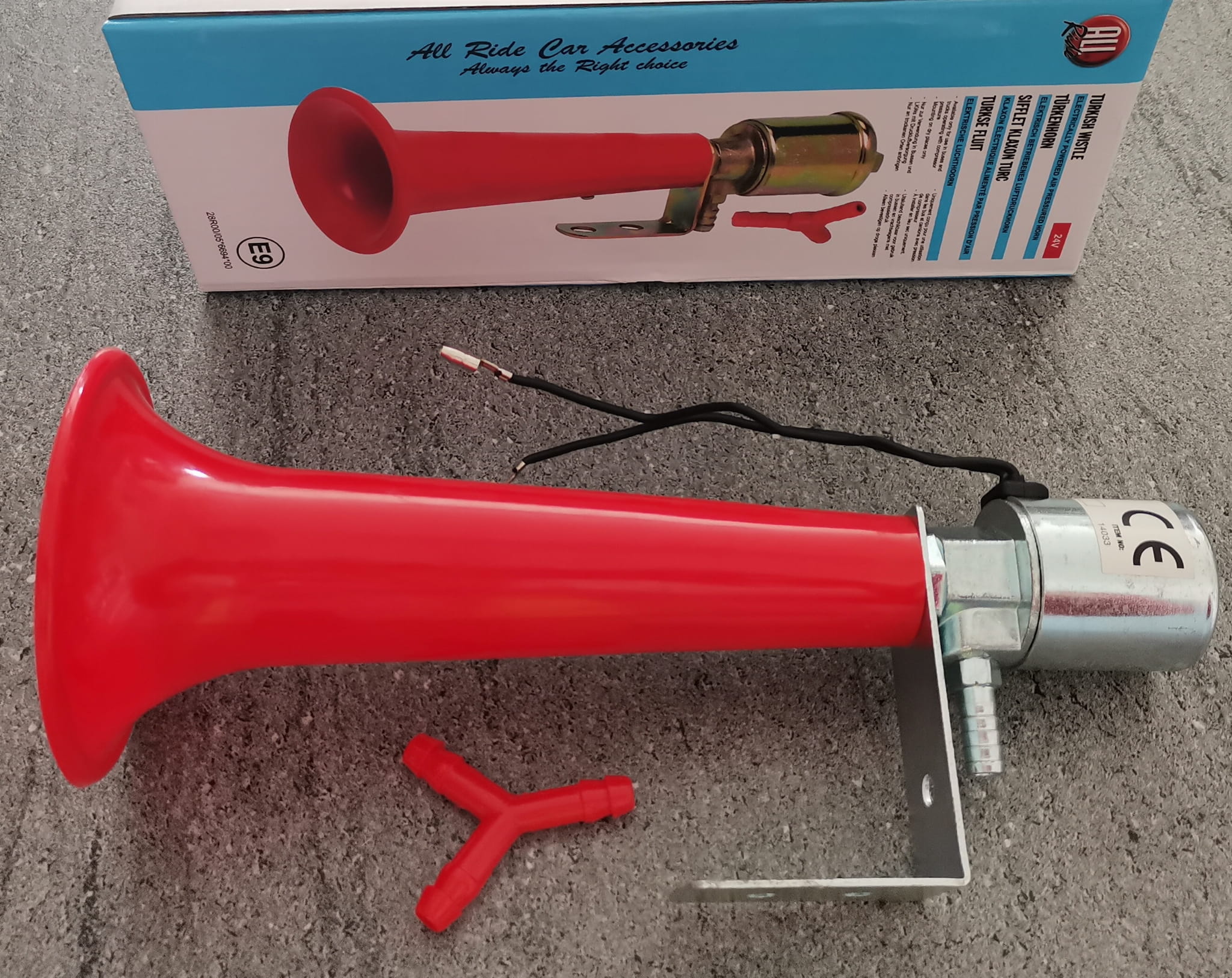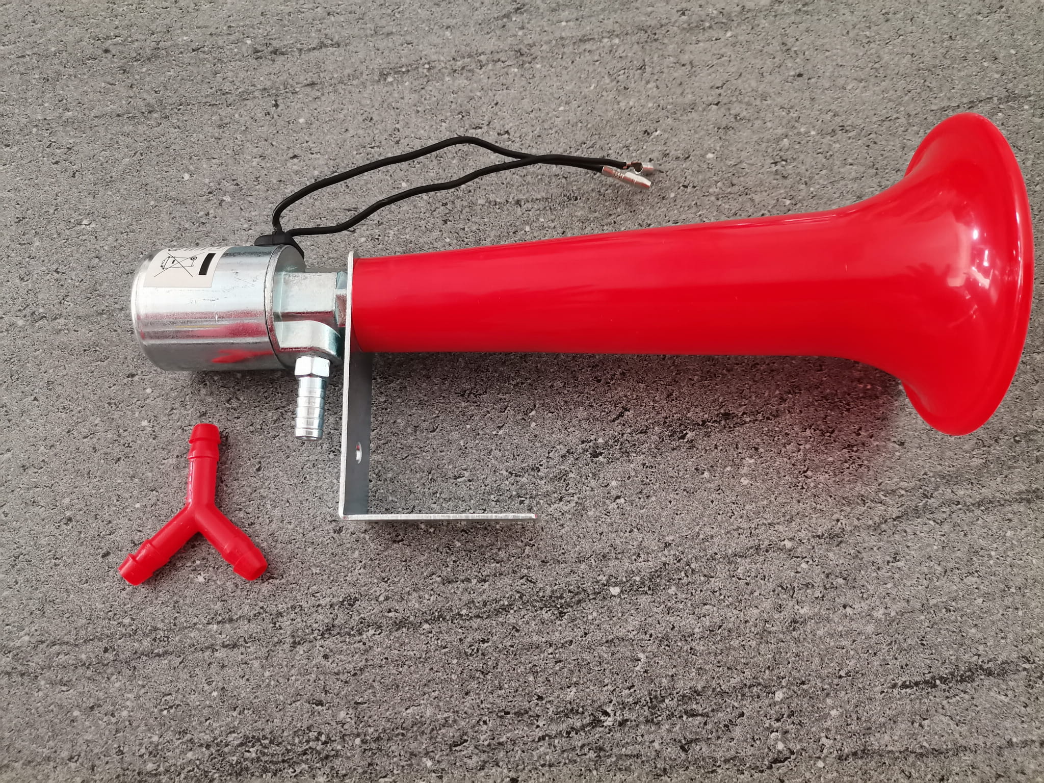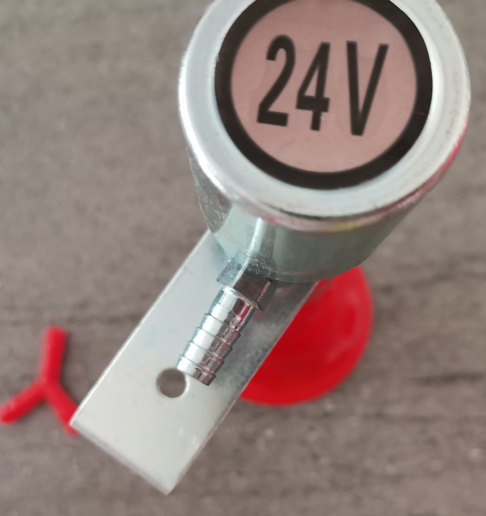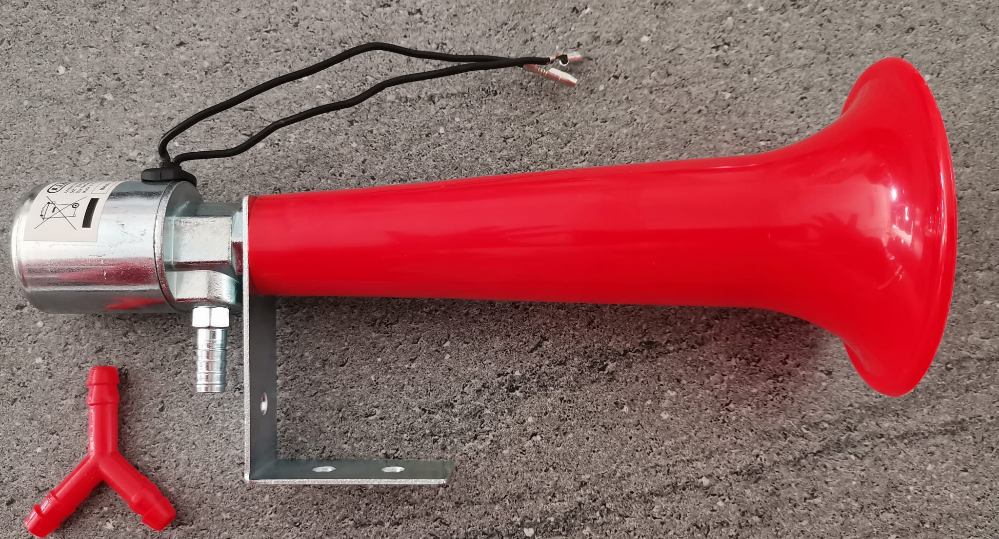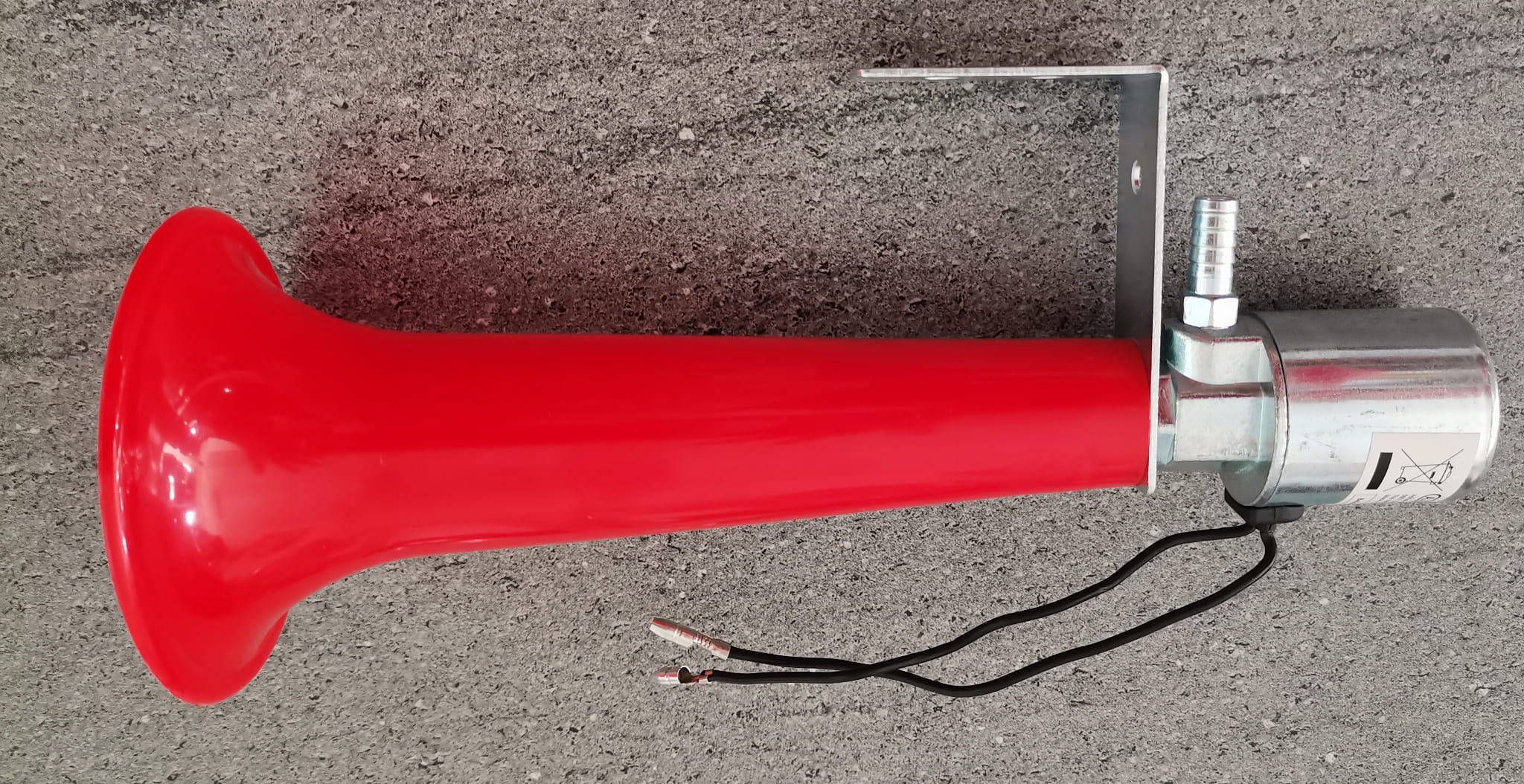Elektryczny klakson pneumatyczny, do zastosowania w samochdach ciężarowych, pojazdach użytkowych, dostawczych lub autobusach z instalacją elektryczną 24 V oraz z kompresorem.