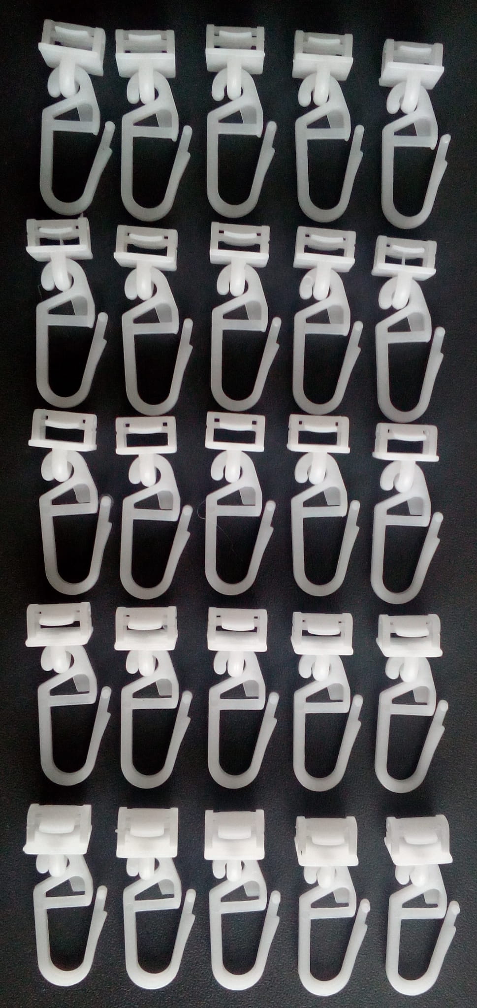 Podana cena jest za paczkę czyli za 25 sztuk produktu. Jeżeli chcesz zamocować cały komplet firan (do całej kabiny) zalecane jest użycie około 75 sztuk haczyków (3 paczki).