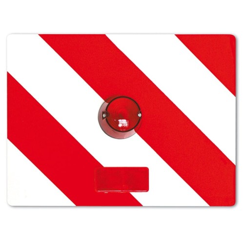 Tablica posiada oświetlenie. Zamontowana jest czerwona lampka żarówkowa oraz kable elektryczne umożliwiające podłączenie do instalacji elektrycznej pojazdu.