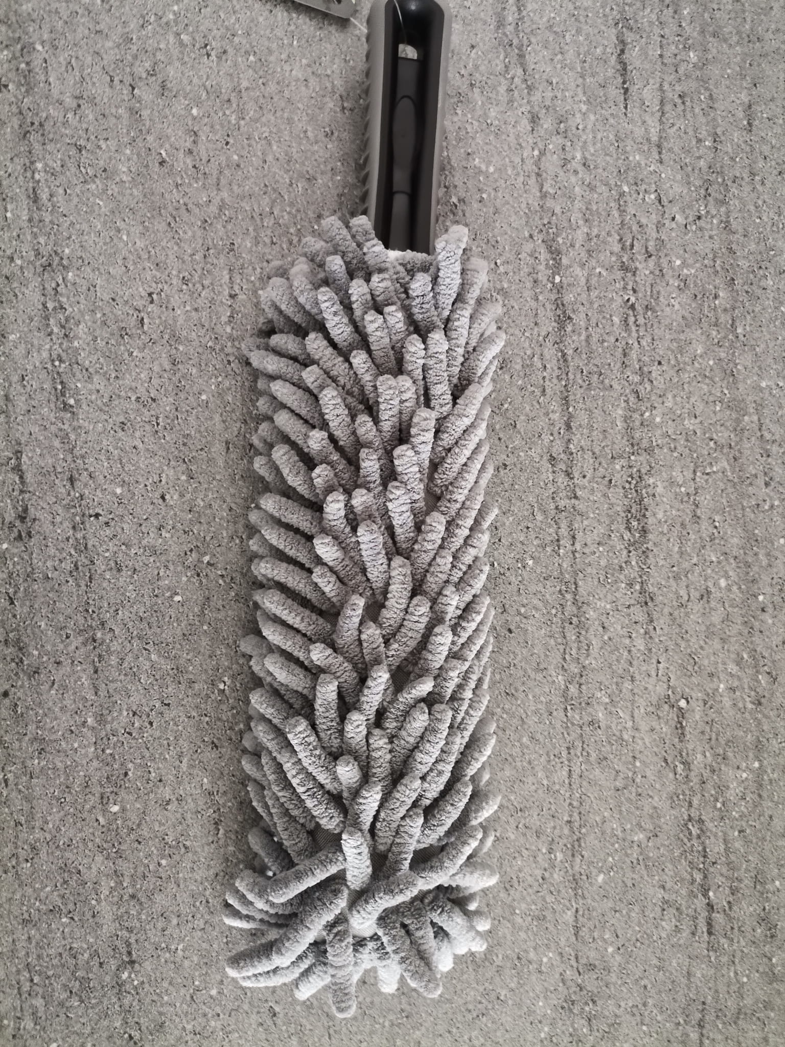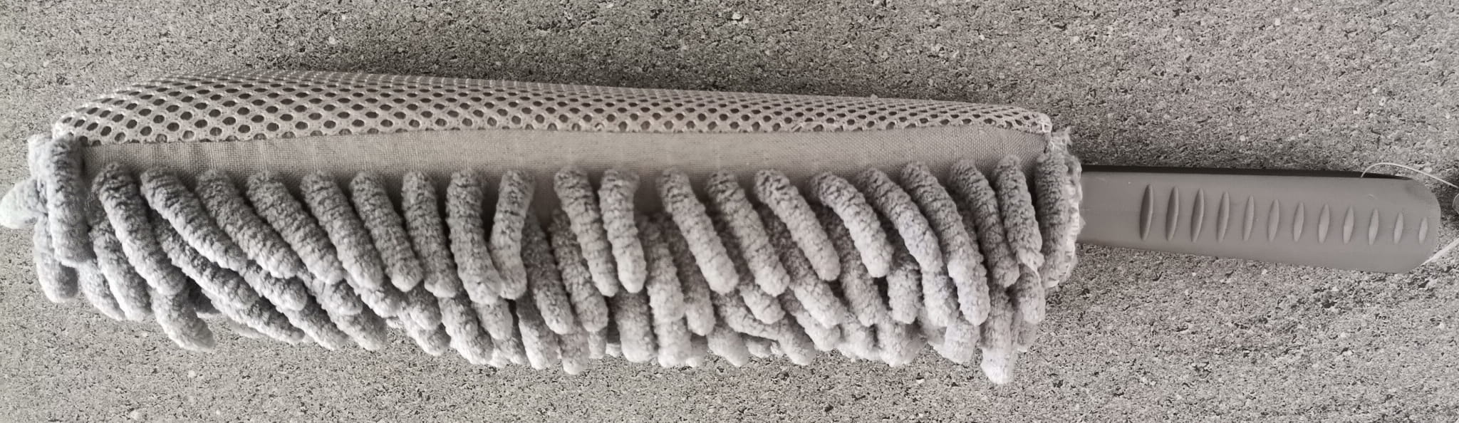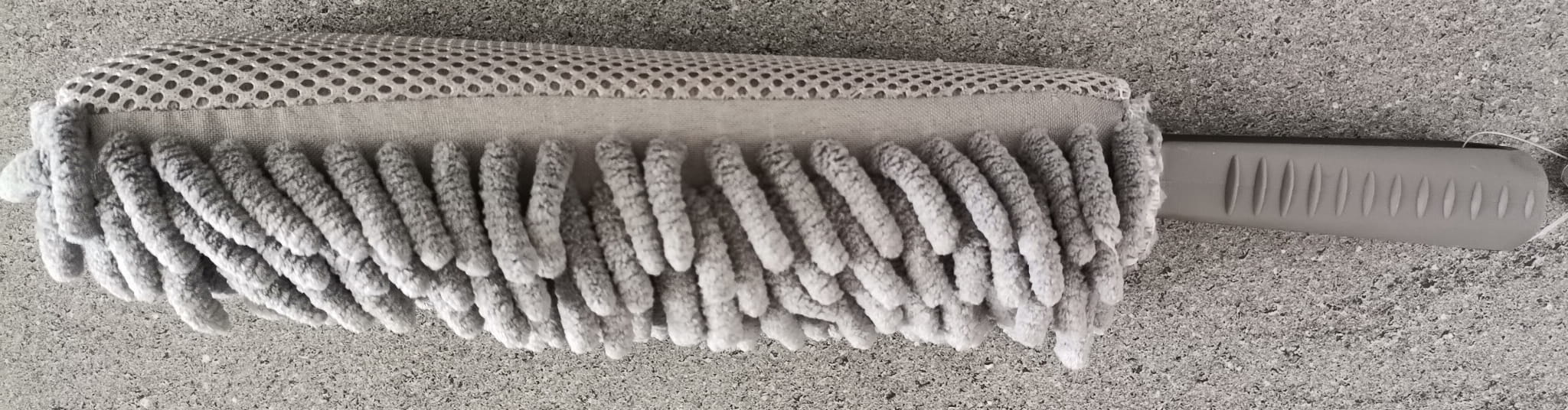 Czyścik do mycia felg samochodowych jest dwustronny. Z jednej strony są miękkie włókna szenilowe, z drugiej strony jest gąbka siatkowa. Całkowita dlugość czyścika to 36 cm. Szenil efektywnie myje bez zarysowań, siatka skutecznie usuwa trudniejsze zabrudzenia. Antypoślizgowy uchwyt (o długości 10 cm) zapewnia pewny chwyt. Szczotka jest odporna na działanie chemii myjącej oraz preparatów kwasowych i zasadowych.