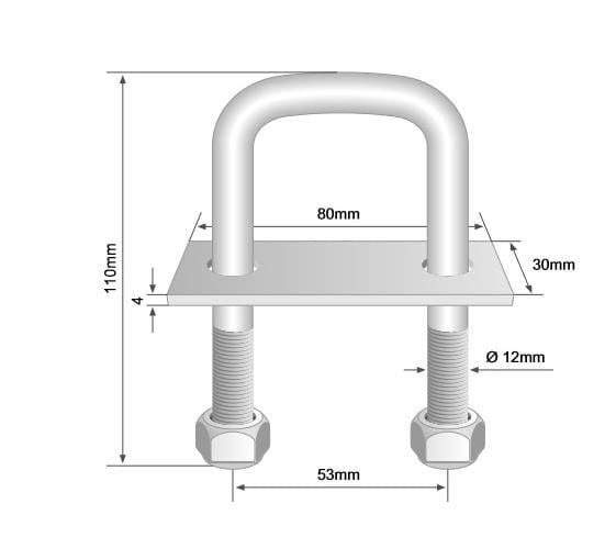 Uchwyt przeznaczony jest do mocowania ładunków, wykonany z wysokogatunkowej stali ocynkowanej.