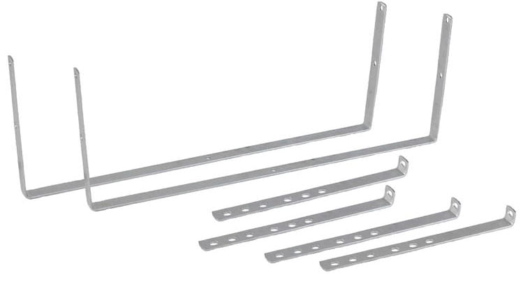 * składa się z 2 wsporników dolnych typu U, 4 uchwytów bocznych typu L oraz kompletu śrub, nakrętek i podkładek M10. Wsporniki są wykonane z wysokogatunkowej stali ocynkowanej o grubości 5 mm, szerokość wspornika 30 mm.