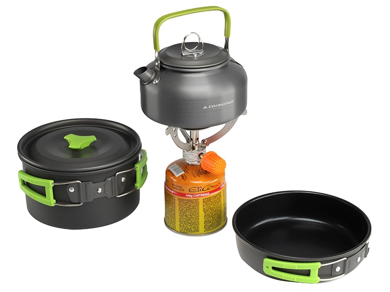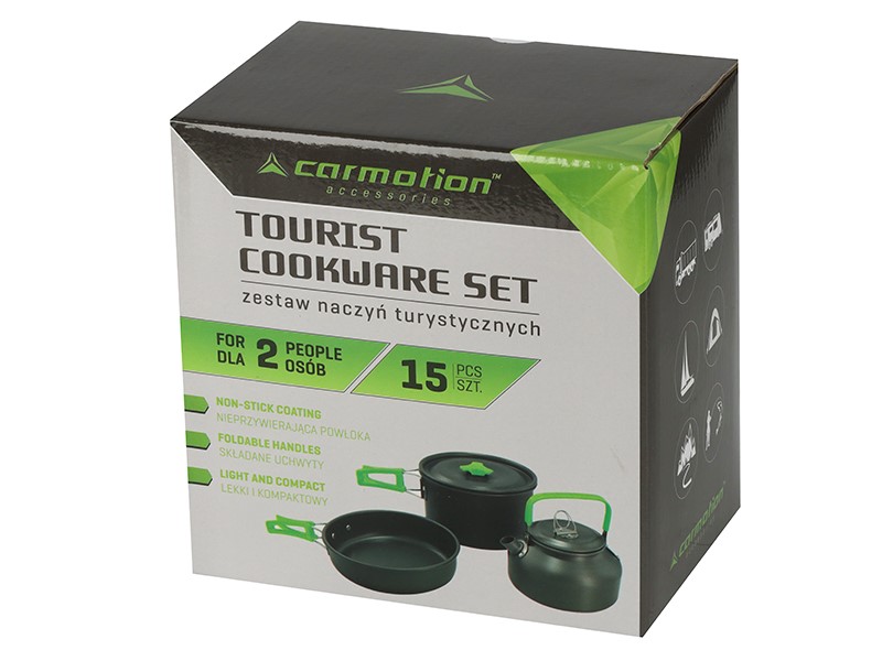 Zestaw przeznaczony jest dla miłośników podróżowania i spędzania wolnego czasu w plenerze. Idealnie sprawdzi się on na biwaku, pieszej wędrówce, czy w podróży ciężarówką, motorem lub kamperem. Całość zapakowana jest w poręczną torbę, którą z łatwością można przymocować do plecaka, by zaoszczędzić miejsce. Naczynia posiadają składane uchwyty.
